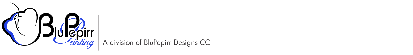 Welcome to the home of BluPepirr Printing, a division of BluPepirr Designs CC. We are committed to delivering quality products in record time. We keep our prices competitive and we strive to always ensure customer satisfaction!