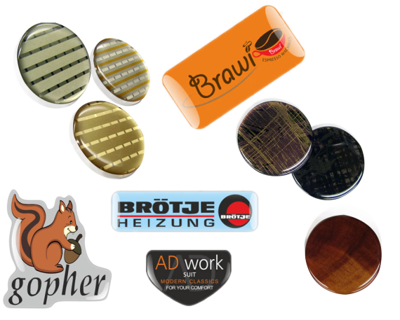 DomingA thin layer of Polyurethane resin is applied to a digital sticker, creating a 3D effect stand alone products include: dome stickers, name badges, key rings, zip pullers. Limitations